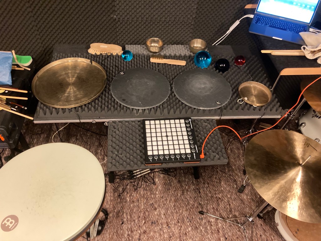 The new piece is a reflection on Karlheinz Stockhausen Zyklus and it is an investigation of formal cycles as well as physical circles and cycles within the micro-percussion set-up.